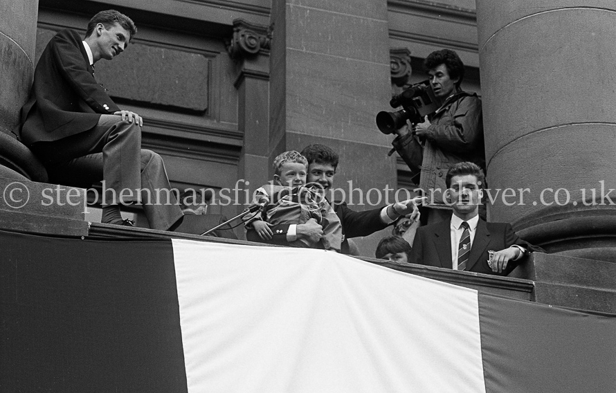 The St. Mirren Football team arrive back in Paisley after winning the Scottish Cup in the 1-0 final with Dundee United at Hampden Park. Ian Ferguson was the scorer and was the third cup win in their then 110-year history. Pictures by Stephen Mansfield.