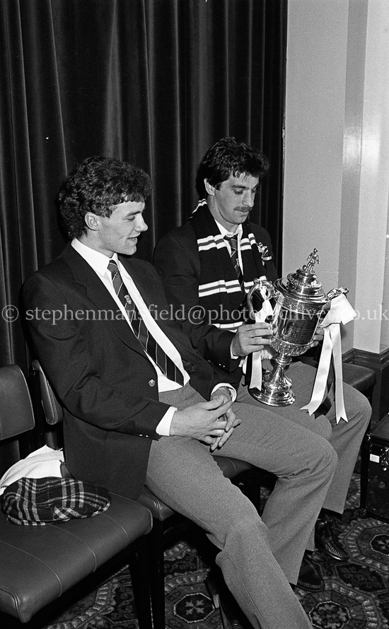 The St. Mirren Football team arrive back in Paisley after winning the Scottish Cup in the 1-0 final with Dundee United at Hampden Park. Ian Ferguson was the scorer and was the third cup win in their then 110-year history. Pictures by Stephen Mansfield.