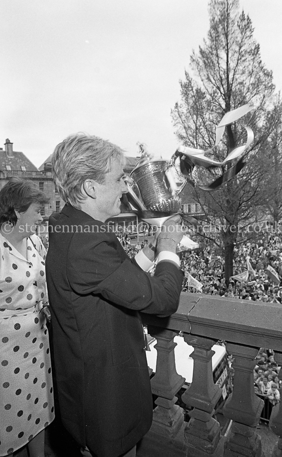 The St. Mirren Football team arrive back in Paisley after winning the Scottish Cup in the 1-0 final with Dundee United at Hampden Park. Ian Ferguson was the scorer and was the third cup win in their then 110-year history. Pictures by Stephen Mansfield.