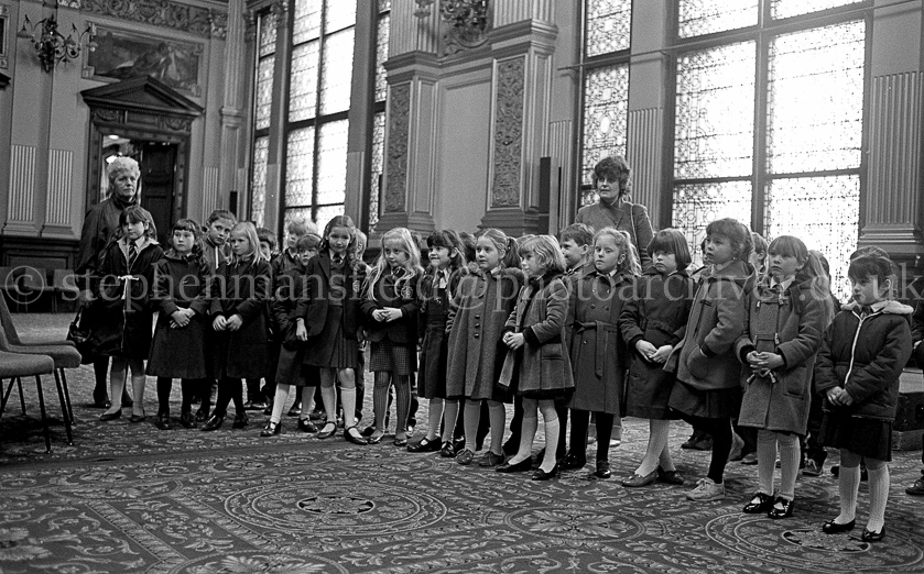 St. Mirin's Primary School in the South Side of Glasgow visited the headquarters of Glasgow City Council, the Glasgow City Chambers in George Square in February 1984. Pictures by Stephen Mansfield for the South Side News.