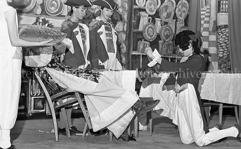 The dress rehearsal of Shawlands Academy's Winter Pantomime Cinderella performed in the school hall in February 1984. Pictures by Stephen Mansfield for the South Side News.