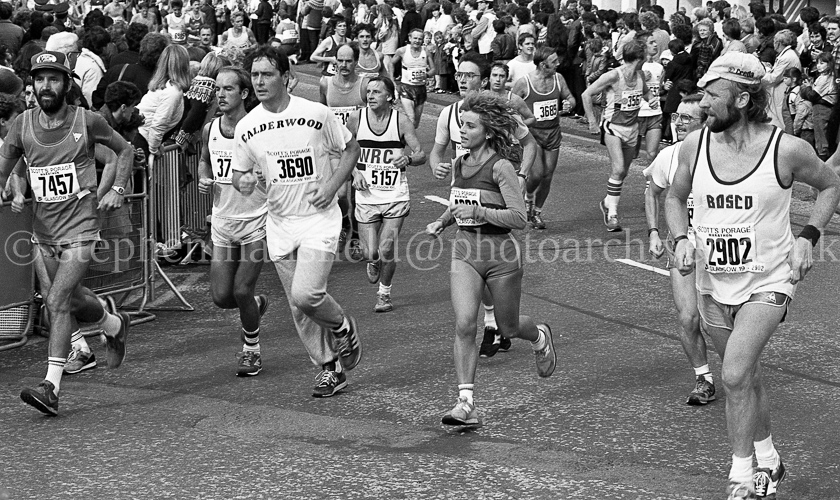 A selection of pictures taken from the 1983 Glasgow Marathon and sponsored by Scott's Porage Oats. The photographs were taken around the halfway point as the runners crossed King George V Bridge in the city centre and at the finishing line in Glasgow Green. Pictures by Stephen Mansfield.