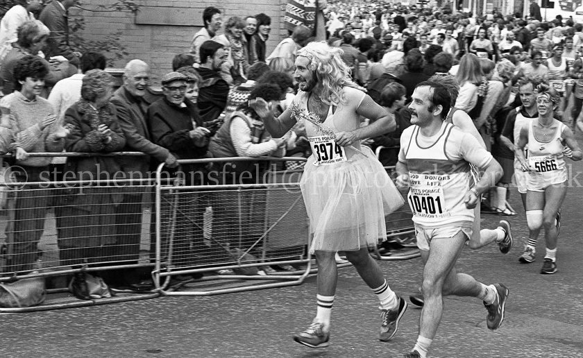 A selection of pictures taken from the 1983 Glasgow Marathon and sponsored by Scott's Porage Oats. The photographs were taken around the halfway point as the runners crossed King George V Bridge in the city centre and at the finishing line in Glasgow Green. Pictures by Stephen Mansfield.