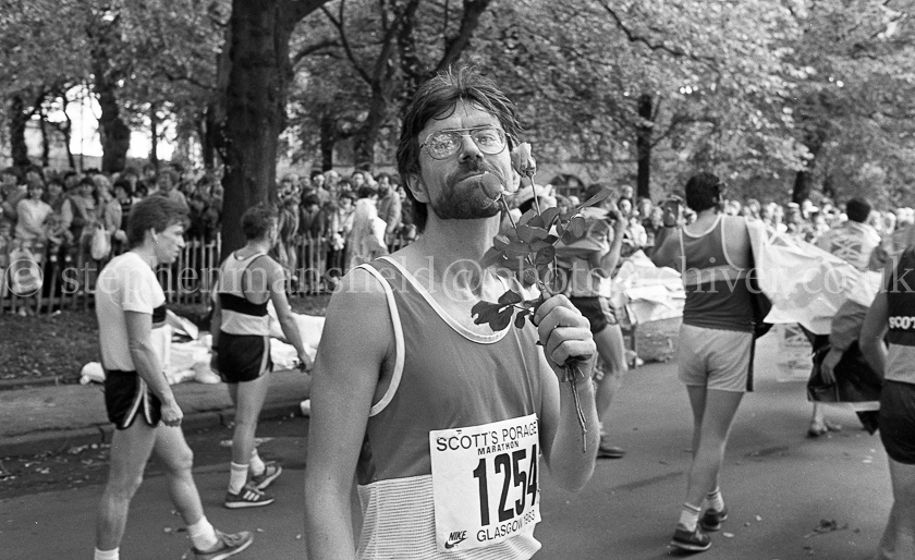 A selection of pictures taken from the 1983 Glasgow Marathon and sponsored by Scott's Porage Oats. The photographs were taken around the halfway point as the runners crossed King George V Bridge in the city centre and at the finishing line in Glasgow Green. Pictures by Stephen Mansfield.
