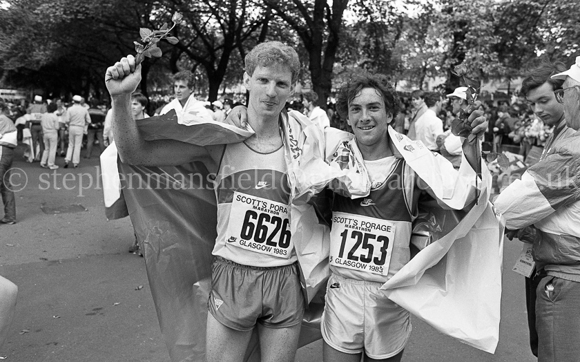 A selection of pictures taken from the 1983 Glasgow Marathon and sponsored by Scott's Porage Oats. The photographs were taken around the halfway point as the runners crossed King George V Bridge in the city centre and at the finishing line in Glasgow Green. Pictures by Stephen Mansfield.