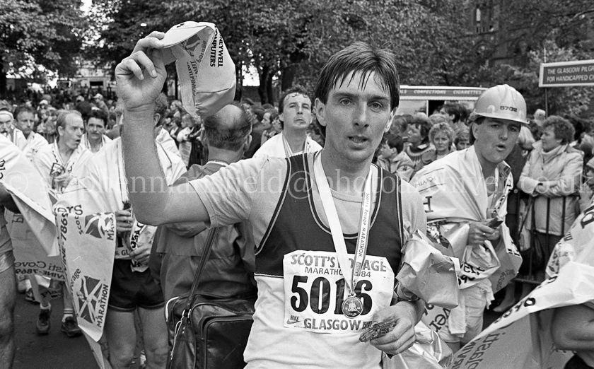 A selection of pictures taken from the 1984 Glasgow Marathon and sponsored by Scott's Porage Oats. The photographs were taken around the halfway point as the runners crossed King George V Bridge in the city centre and at the finishing line in Glasgow Green. Pictures by Stephen Mansfield.
