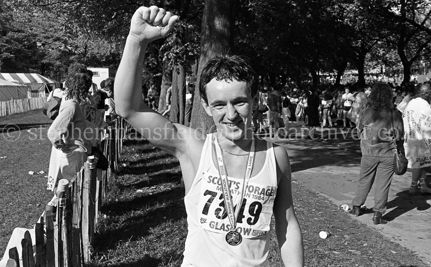 A selection of pictures taken from the 1984 Glasgow Marathon and sponsored by Scott's Porage Oats. The photographs were taken around the halfway point as the runners crossed King George V Bridge in the city centre and at the finishing line in Glasgow Green. Pictures by Stephen Mansfield.