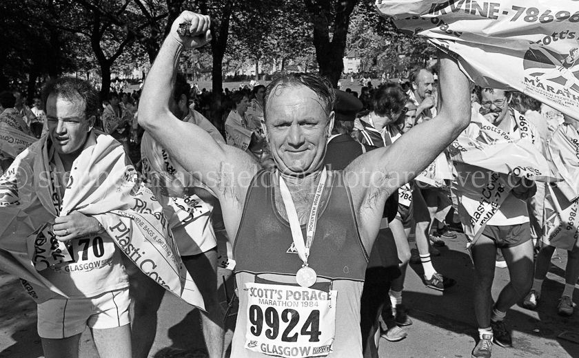 A selection of pictures taken from the 1984 Glasgow Marathon and sponsored by Scott's Porage Oats. The photographs were taken around the halfway point as the runners crossed King George V Bridge in the city centre and at the finishing line in Glasgow Green. Pictures by Stephen Mansfield.