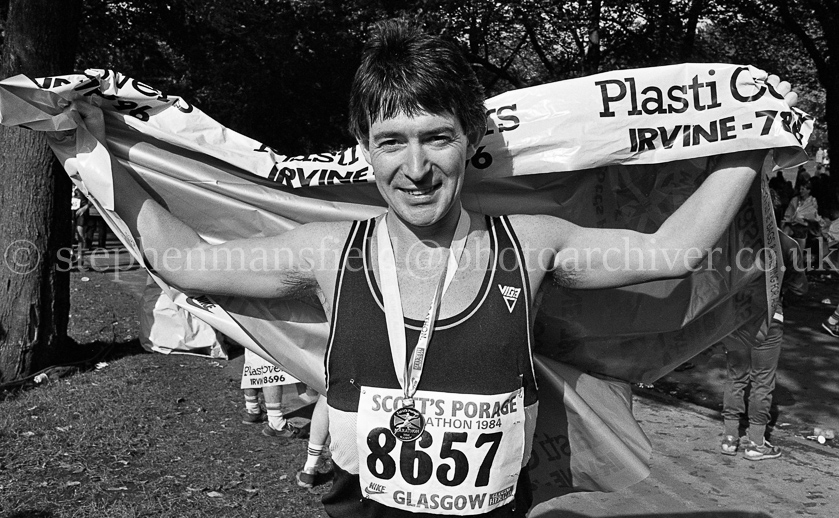 A selection of pictures taken from the 1984 Glasgow Marathon and sponsored by Scott's Porage Oats. The photographs were taken around the halfway point as the runners crossed King George V Bridge in the city centre and at the finishing line in Glasgow Green. Pictures by Stephen Mansfield.
