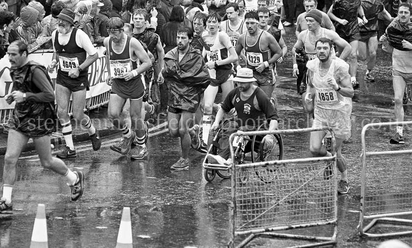 A selection of pictures from the 1985 Glasgow Marathon sponsored by Scott's Porage Oats. The photographs were taken around the halfway point as the runners crossed King George V Bridge in the city centre and at the finishing line in Glasgow Green. Pictures by Stephen Mansfield.