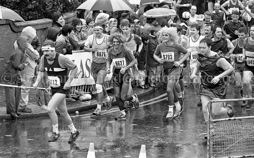 A selection of pictures from the 1985 Glasgow Marathon sponsored by Scott's Porage Oats. The photographs were taken around the halfway point as the runners crossed King George V Bridge in the city centre and at the finishing line in Glasgow Green. Pictures by Stephen Mansfield.