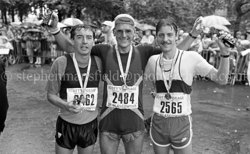 A selection of pictures from the 1985 Glasgow Marathon sponsored by Scott's Porage Oats. The photographs were taken around the halfway point as the runners crossed King George V Bridge in the city centre and at the finishing line in Glasgow Green. Pictures by Stephen Mansfield.