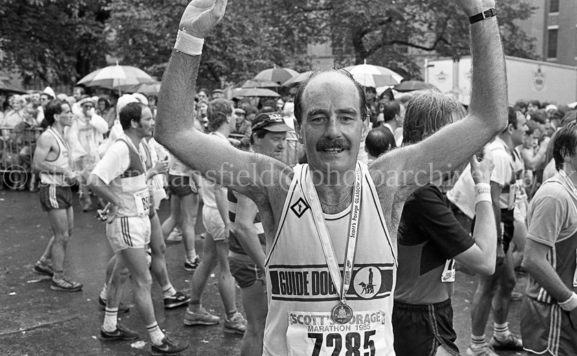 A selection of pictures from the 1985 Glasgow Marathon sponsored by Scott's Porage Oats. The photographs were taken around the halfway point as the runners crossed King George V Bridge in the city centre and at the finishing line in Glasgow Green. Pictures by Stephen Mansfield.