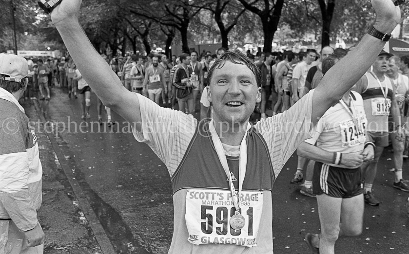 A selection of pictures from the 1985 Glasgow Marathon sponsored by Scott's Porage Oats. The photographs were taken around the halfway point as the runners crossed King George V Bridge in the city centre and at the finishing line in Glasgow Green. Pictures by Stephen Mansfield.