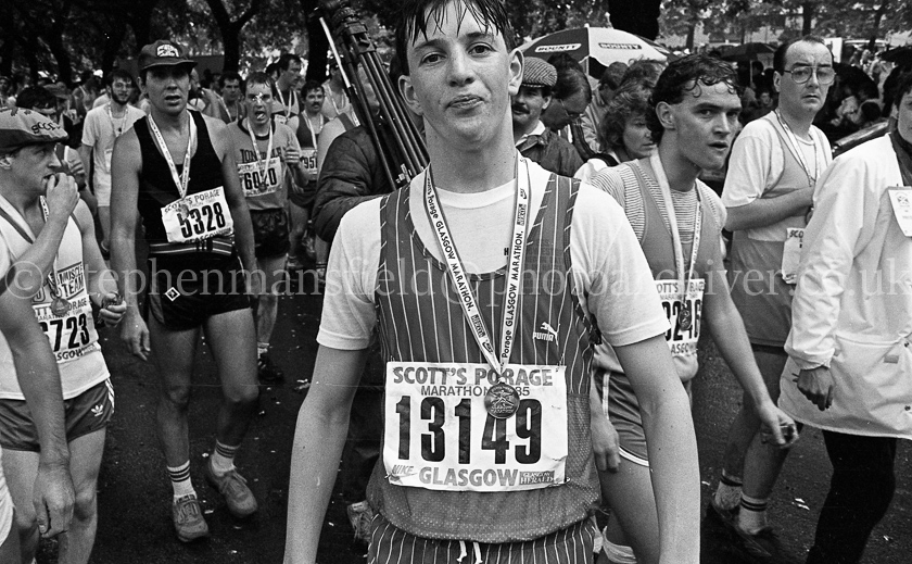 A selection of pictures from the 1985 Glasgow Marathon sponsored by Scott's Porage Oats. The photographs were taken around the halfway point as the runners crossed King George V Bridge in the city centre and at the finishing line in Glasgow Green. Pictures by Stephen Mansfield.