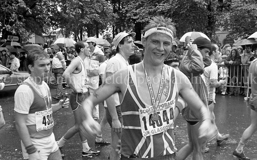 A selection of pictures from the 1985 Glasgow Marathon sponsored by Scott's Porage Oats. The photographs were taken around the halfway point as the runners crossed King George V Bridge in the city centre and at the finishing line in Glasgow Green. Pictures by Stephen Mansfield.