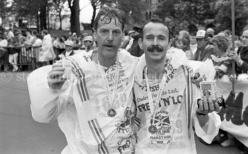 A collection of pictures taken at the finish of the Scottish Citylink Glasgow Marathon on Glasgow Green. They were taken on Sunday 21st September 1986 for the Barrhead and South Side News by freelance photographer Stephen Mansfield.