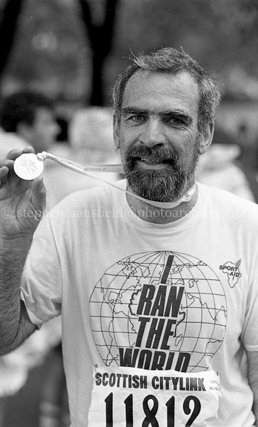 A collection of pictures taken at the finish of the Scottish Citylink Glasgow Marathon on Glasgow Green. They were taken on Sunday 21st September 1986 for the Barrhead and South Side News by freelance photographer Stephen Mansfield.